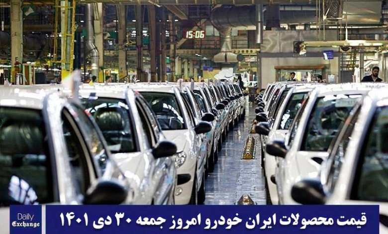 لیست قیمت ایران خودرو جمعه ۳۰ دی ۱۴۰۱