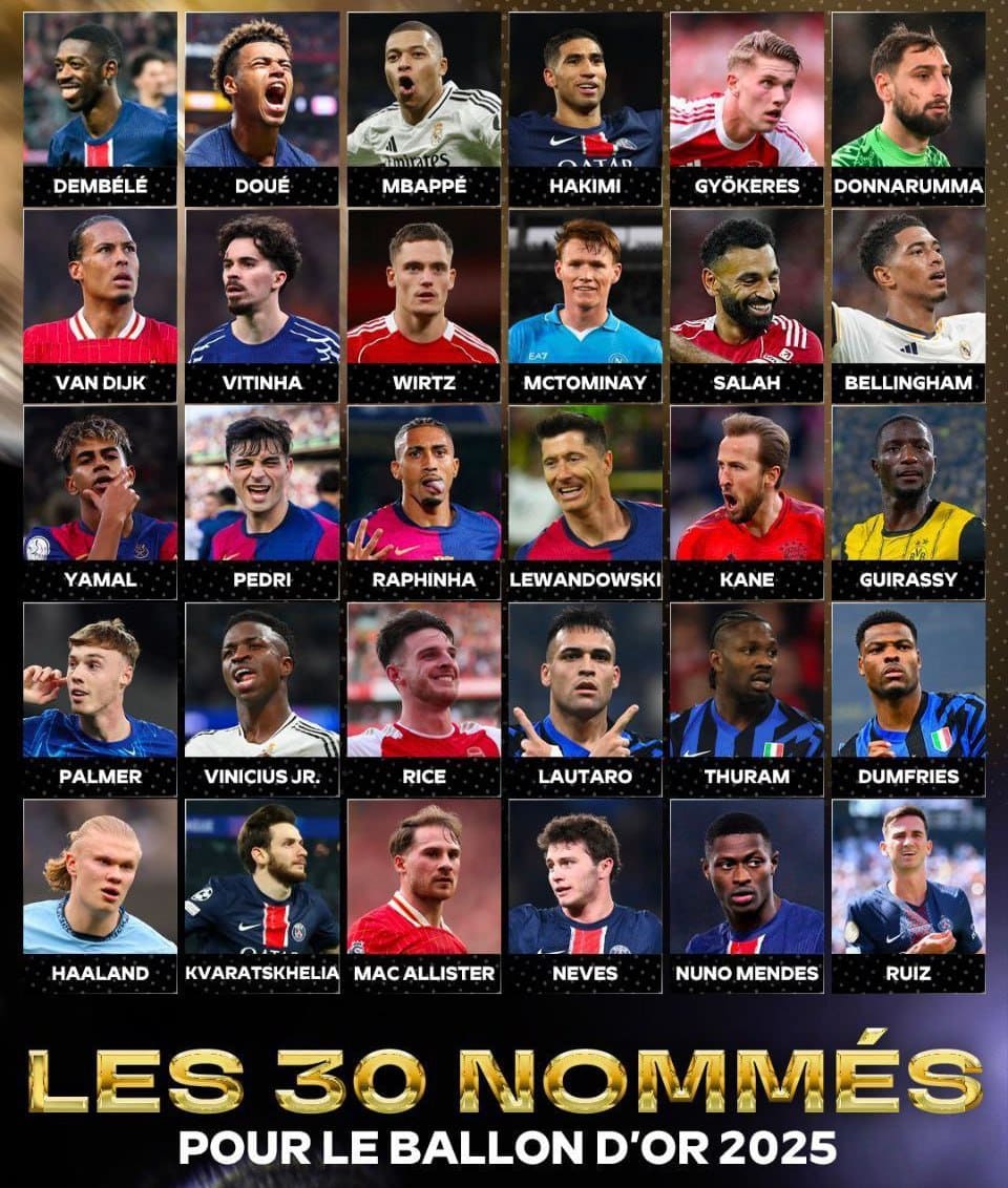عکس| ۳۰ نامزد نهایی توپ طلا ۲۰۲۵ اعلام شد