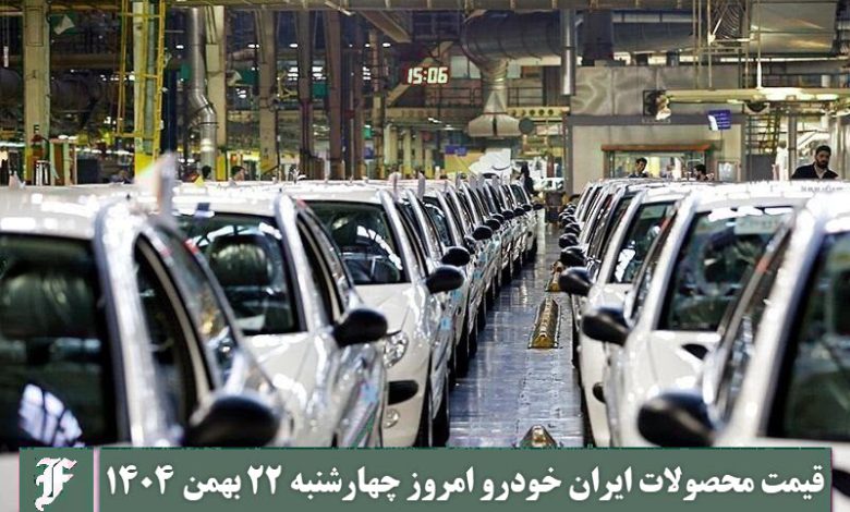 آخرین قیمت محصولات ایران خودرو امروز چهارشنبه ۲۲ بهمن ۱۴۰۴